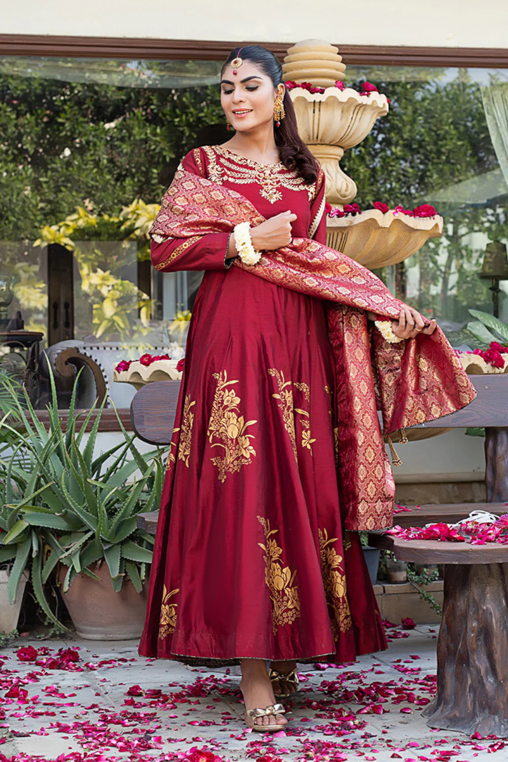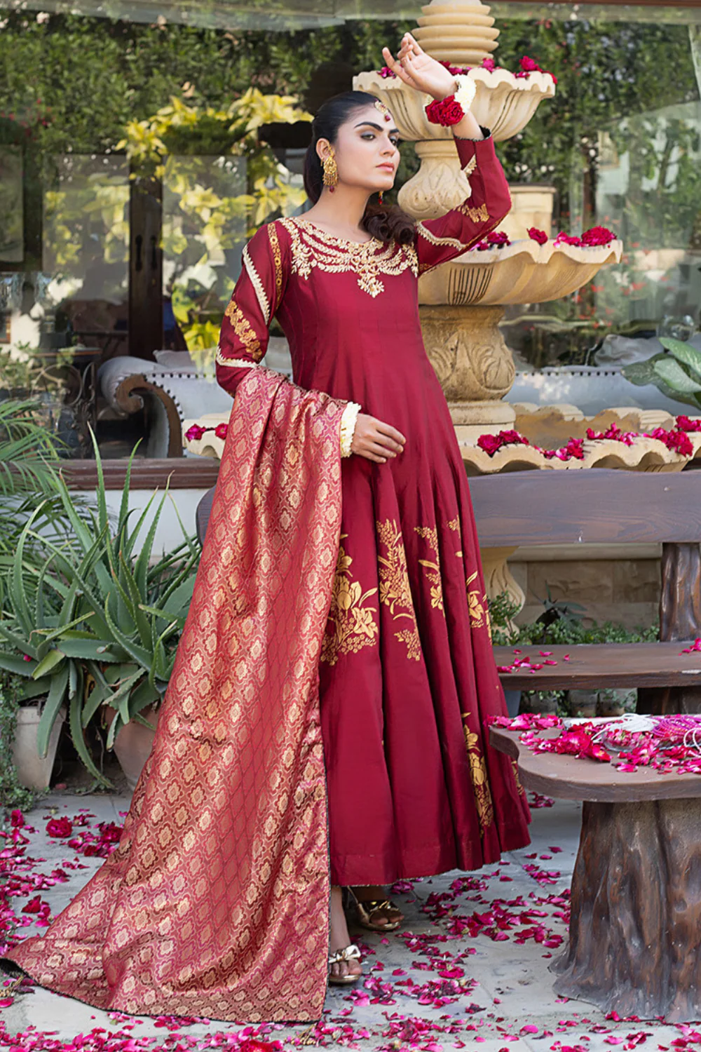 Adorn yourself in the serenity of sea green with our exquisite Khaddi frock paired gracefully with a matching Jamawar shawl. The frock is adorned with delicate handwork on the neck, featuring the elegance of gold dabka, kora, and pearls. The sleeves and daaman boast a charming touch of blockprint, while the sleeves are beautifully finished with Indian lace. The dupatta, elegantly completed with a contrasting color Jamawar, adds the perfect final touch.