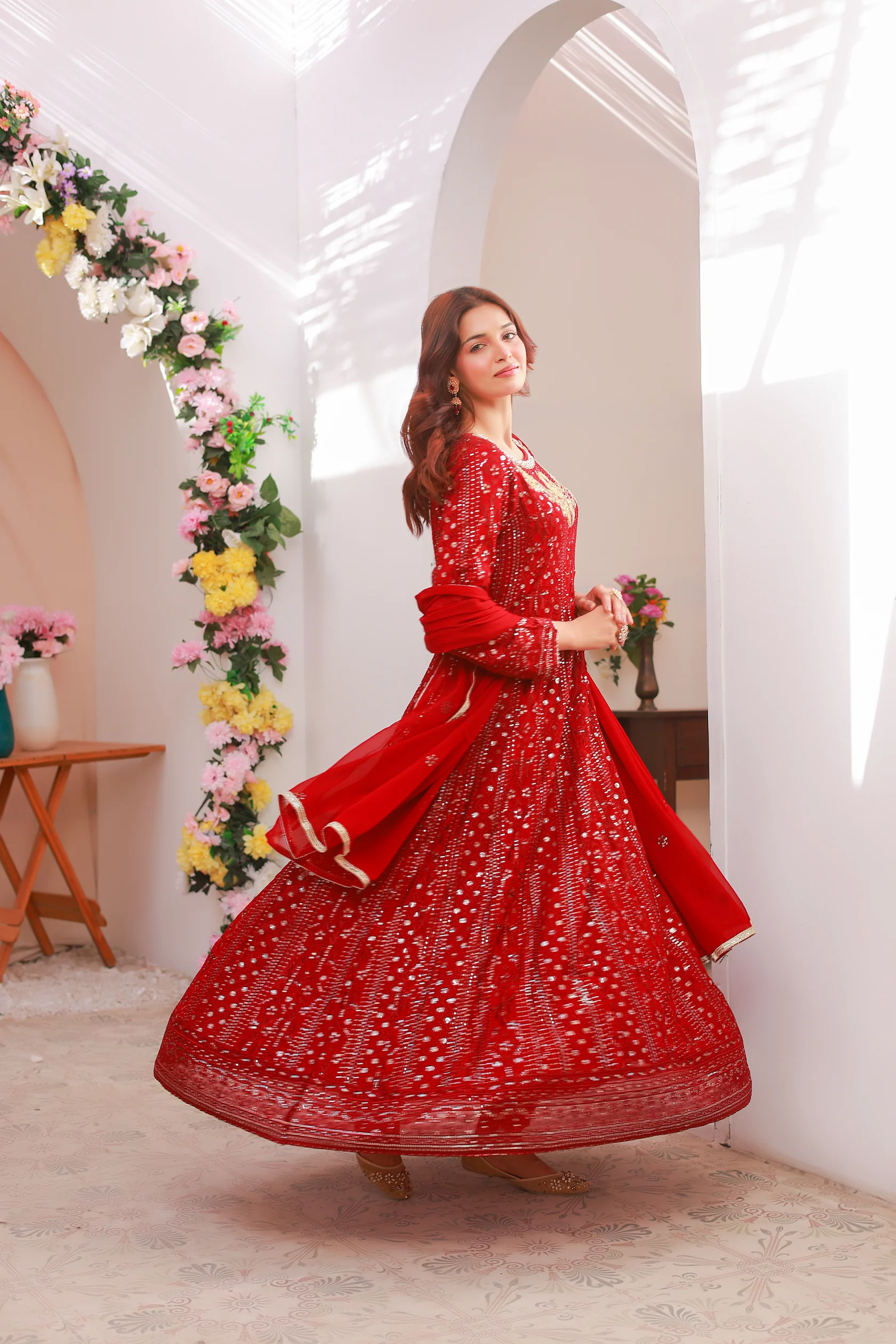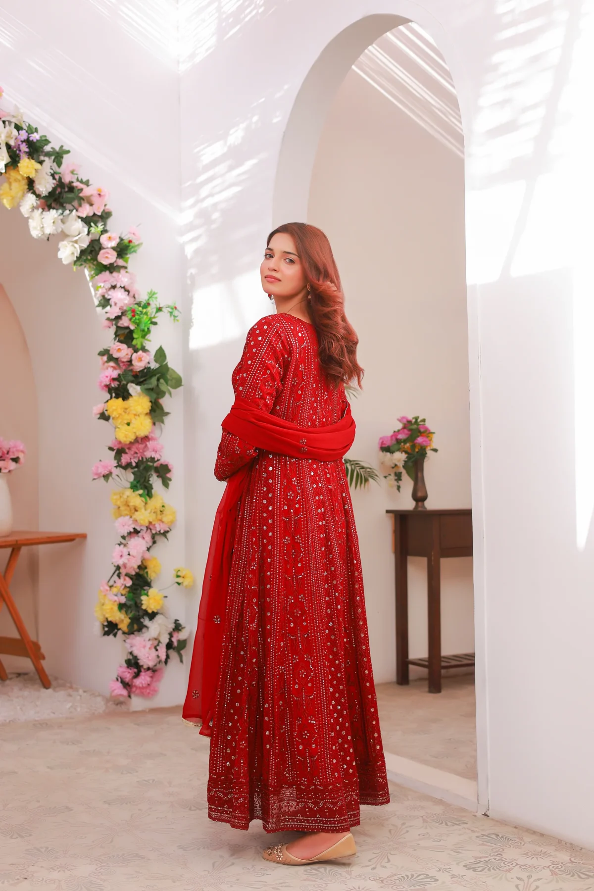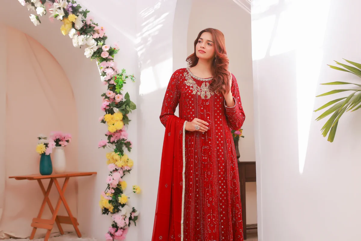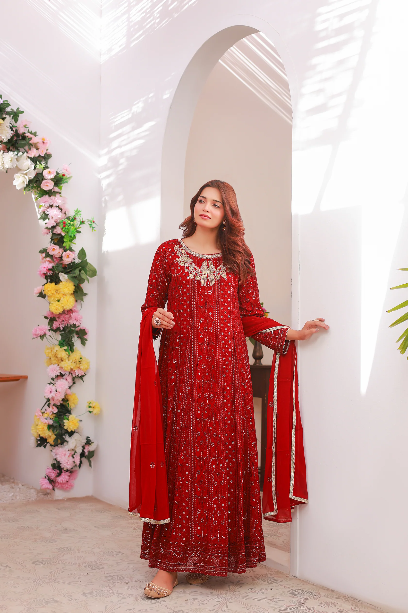 Look absolutely captivating in our JC-015 MAROON maxi dress. Crafted from luxurious chiffon thread, this dress features exquisite sequin embroidery and delicate hand work on the neckline. Complete the look with a stunning chiffon dupatta and straight pants. Elevate your style with this exclusive and elegant piece.