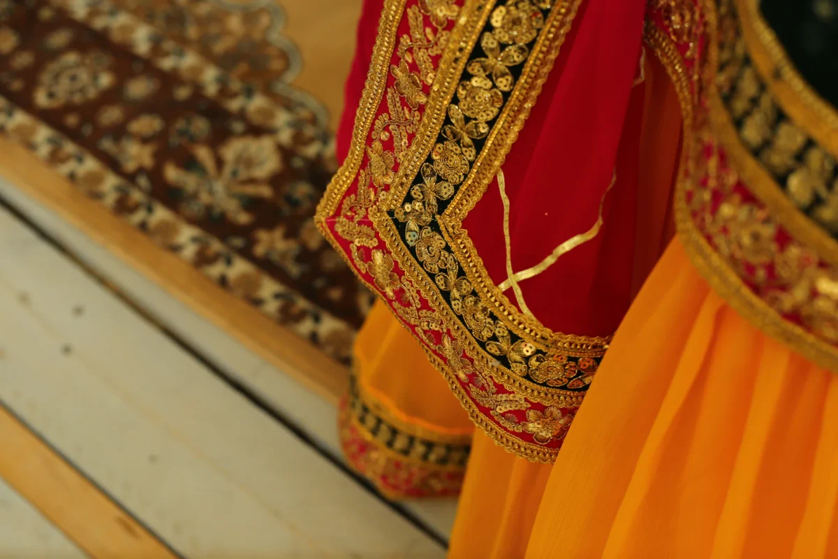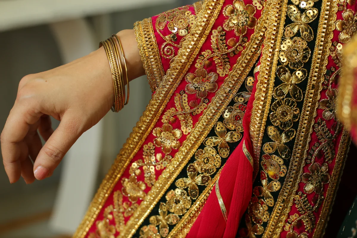 2. Intricate chicken kari embroidery with sequence and thread detailing.