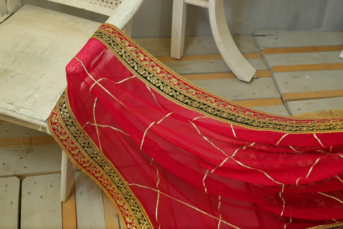 Discover the perfect blend of tradition and luxury with our JC020SG Chiffon Chicken Kari Fabric. This exquisite fabric is woven from soft, lightweight chiffon and features intricate chicken kari embroidery, beautifully enhanced with detailed sequence and thread work.