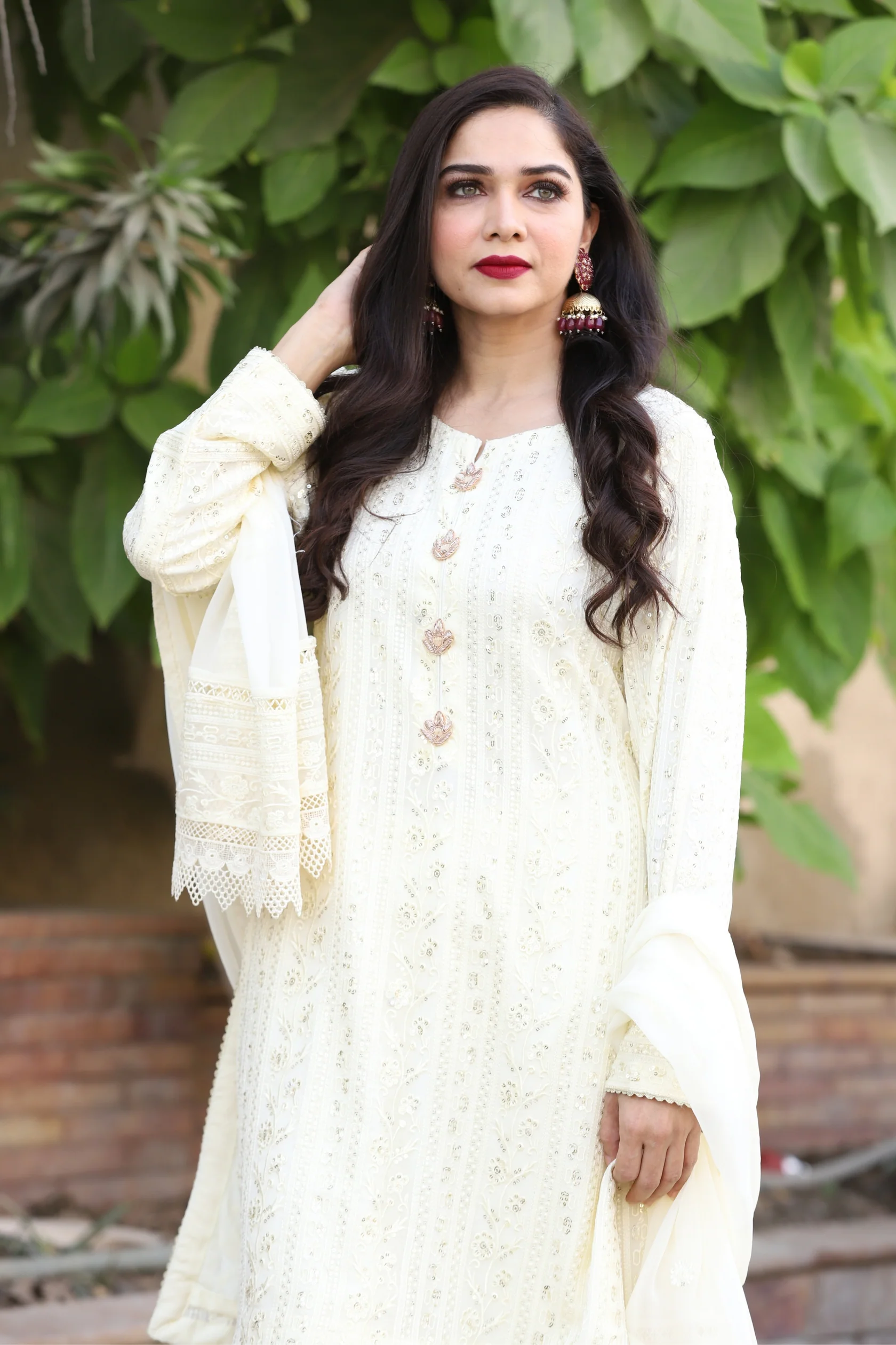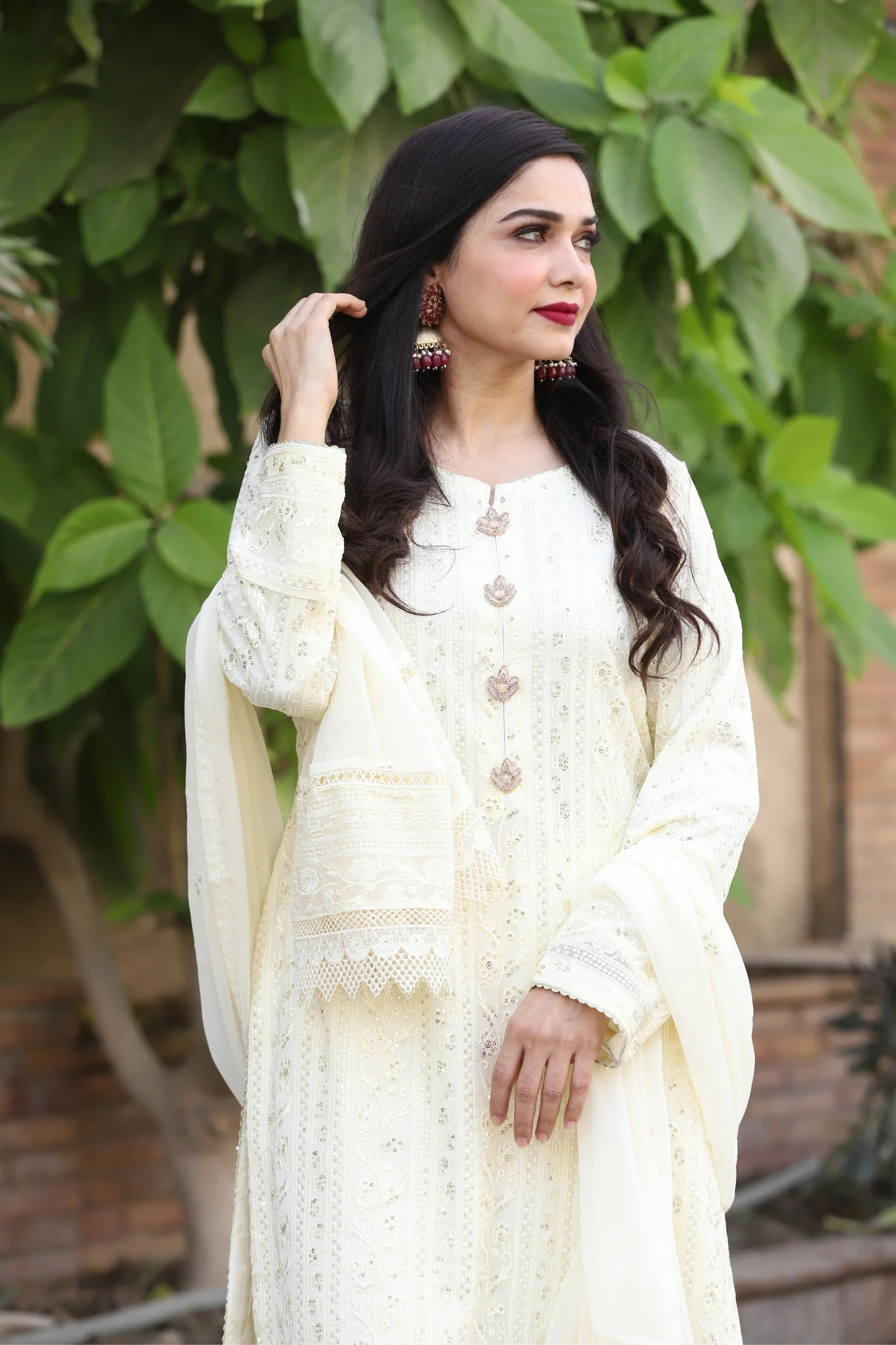 Discover the perfect blend of tradition and luxury with our JC020SG Chiffon Chicken Kari Fabric. This exquisite fabric is woven from soft, lightweight chiffon and features intricate chicken kari embroidery, beautifully enhanced with detailed sequence and thread work.