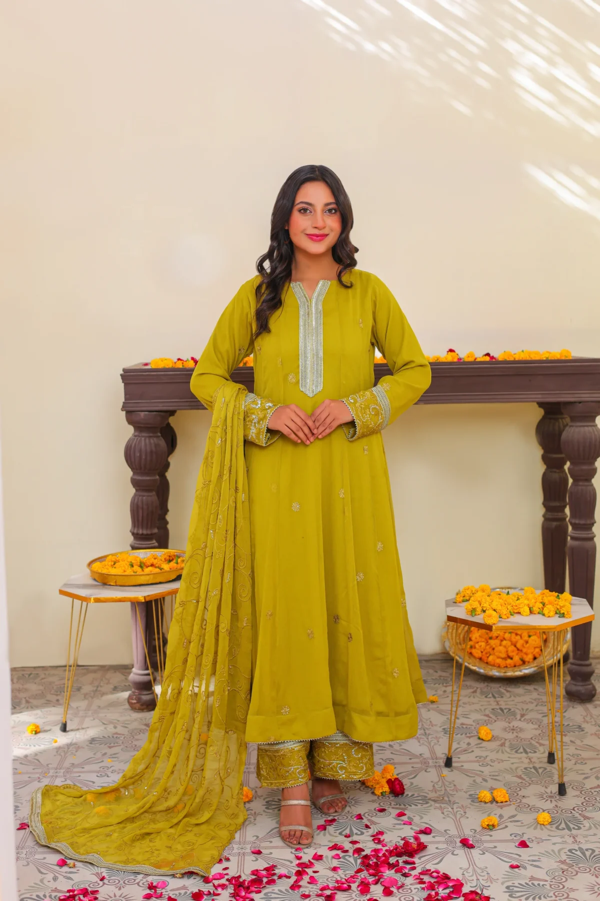 Enhance your wardrobe with the elegant JC-TD outfit. Made from high-quality chiffon, this frock features intricate thread and sequin embroidery for a stunning look. Paired with stylish dhaka pants and a chiffon embroidered dupatta, this ensemble is perfect for any occasion. Elevate your style with this finely crafted outfit.