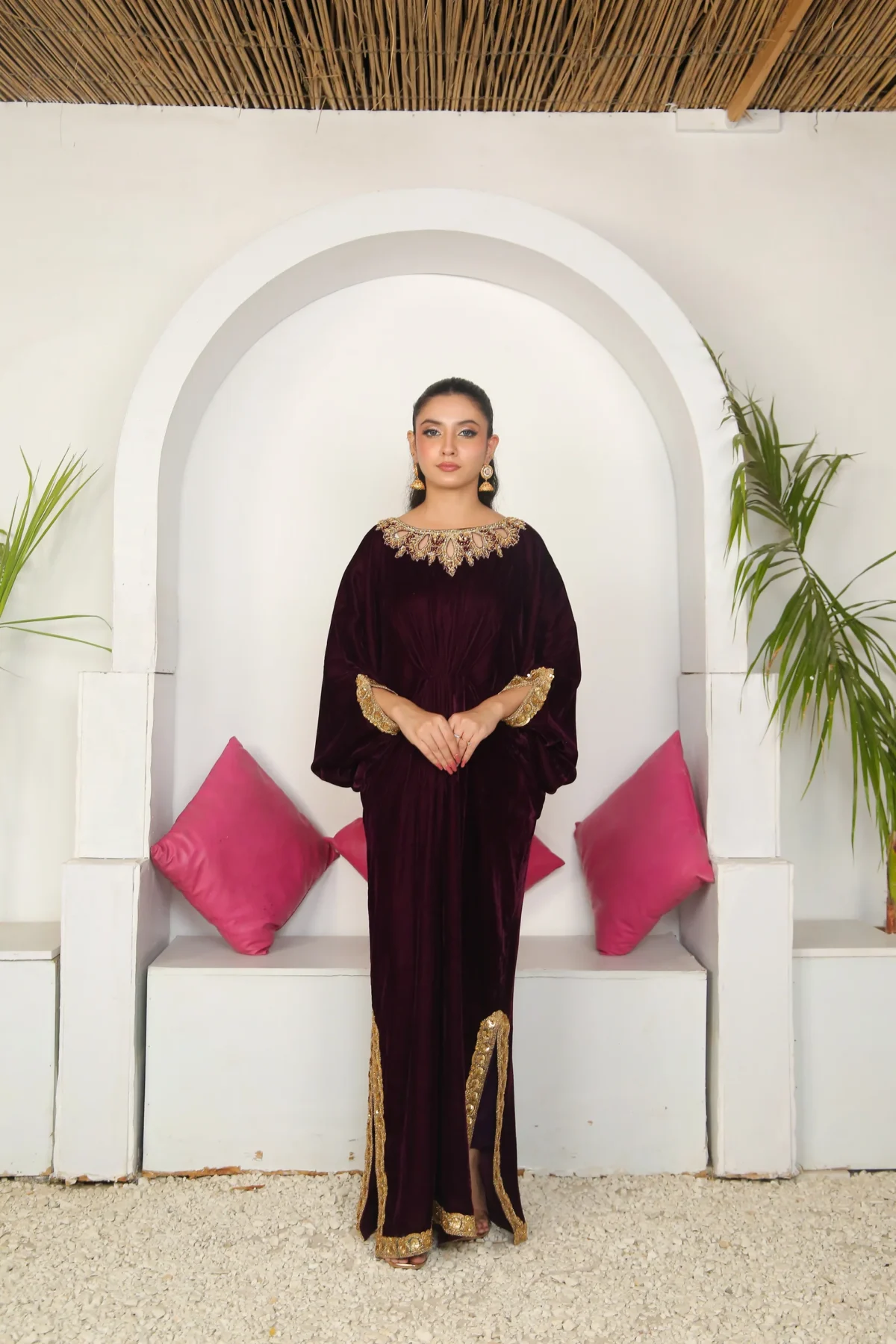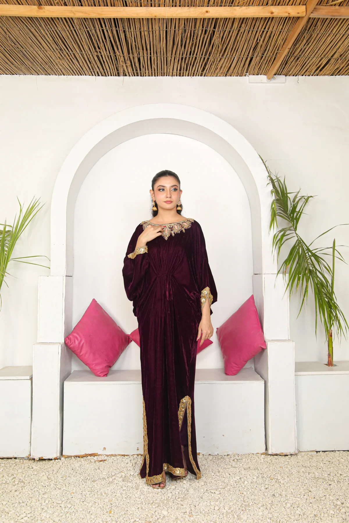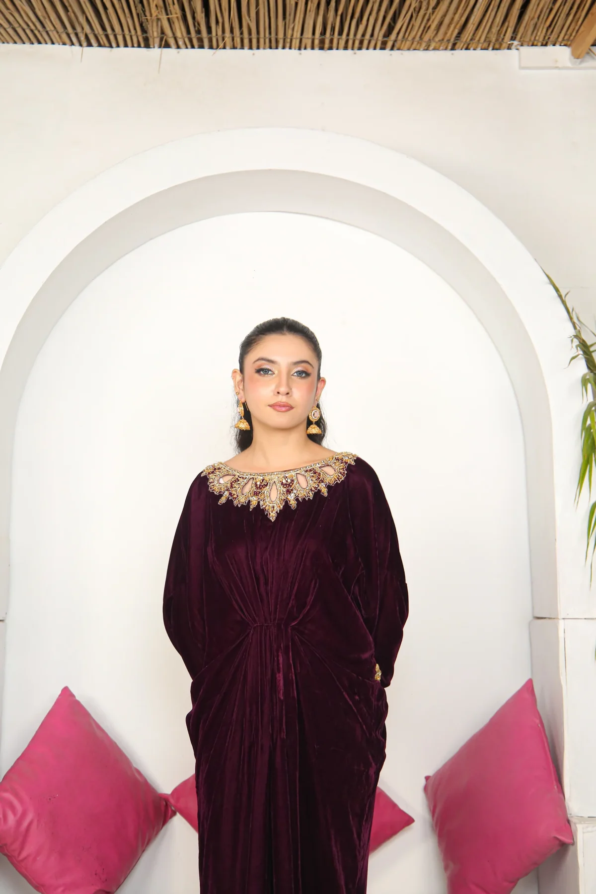 9000 Micro Velvet Shirt with Handwork Neck, Indian Lace Detailing on Sleeves, Side Chokes & Damans